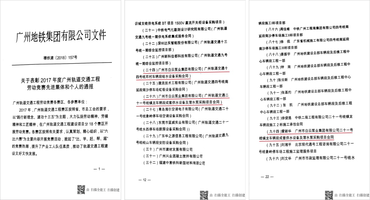 白云泵業(yè)集團榮獲“廣州地鐵集團優(yōu)秀供應(yīng)商”稱號