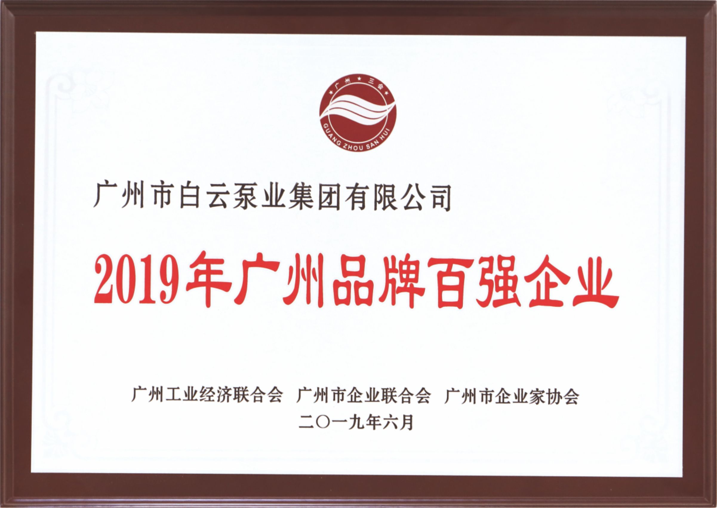 白云泵業(yè)集團榮獲“2019年廣州品牌百強”及“2019年廣州創(chuàng)新百強”雙百強稱號